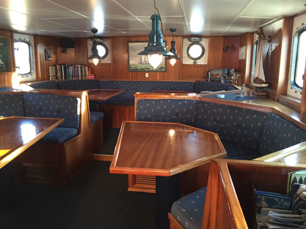 Nun bieten geräumige Kabinen für 6×2 und 3×3 Personen Platz. Die Kojengrößen betragen 80×200 cm und drei Kojen haben eine Maße von 110-130x200cm. Dadurch können drei Kabinen als 3-Bett-Kabine genutzt werden. Alle Kabinen haben Kalt-/Warmwasser, Zentralheizung und eine Steckdose.