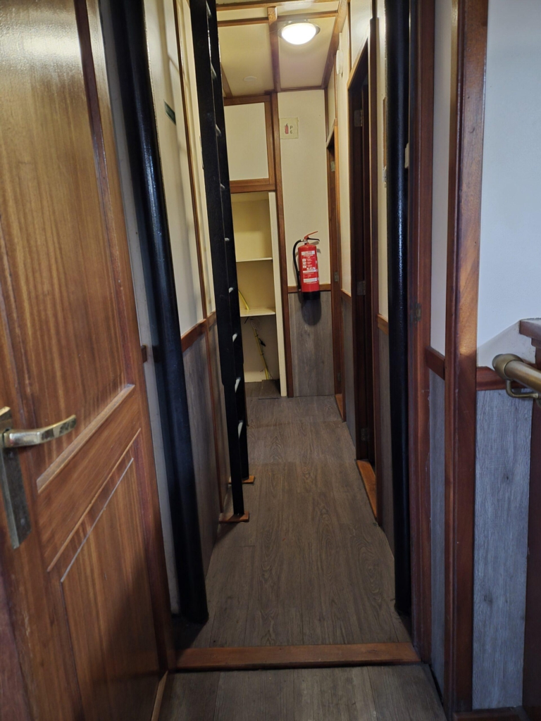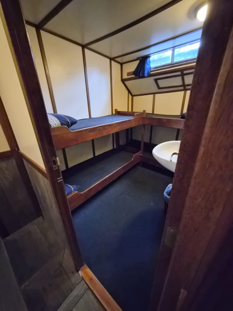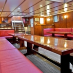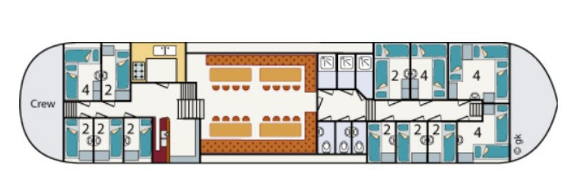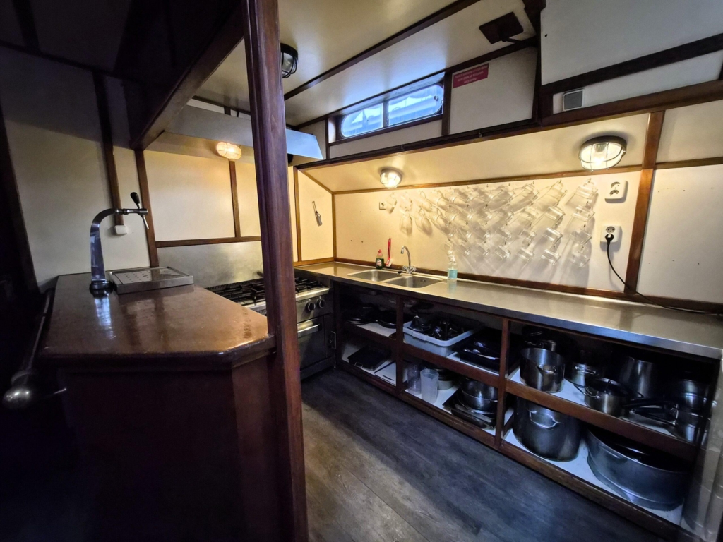 Die voll ausgestattete Küche ermöglicht eine bequeme Selbstversorgung. Ein Gasherd mit sechs Flammen, ein großer 400-Liter-Kühlschrank, ein 80-Liter-Tiefkühler und zwei Spülbecken bieten alles, was Sie für die Zubereitung Ihrer Mahlzeiten benötigen. Auch die Kabinen sind komfortabel eingerichtet und verfügen über Waschbecken mit warmem und kaltem Wasser, Zentralheizung, 220-Volt-Anschlüsse und ausreichend Stauraum für persönliche Dinge.