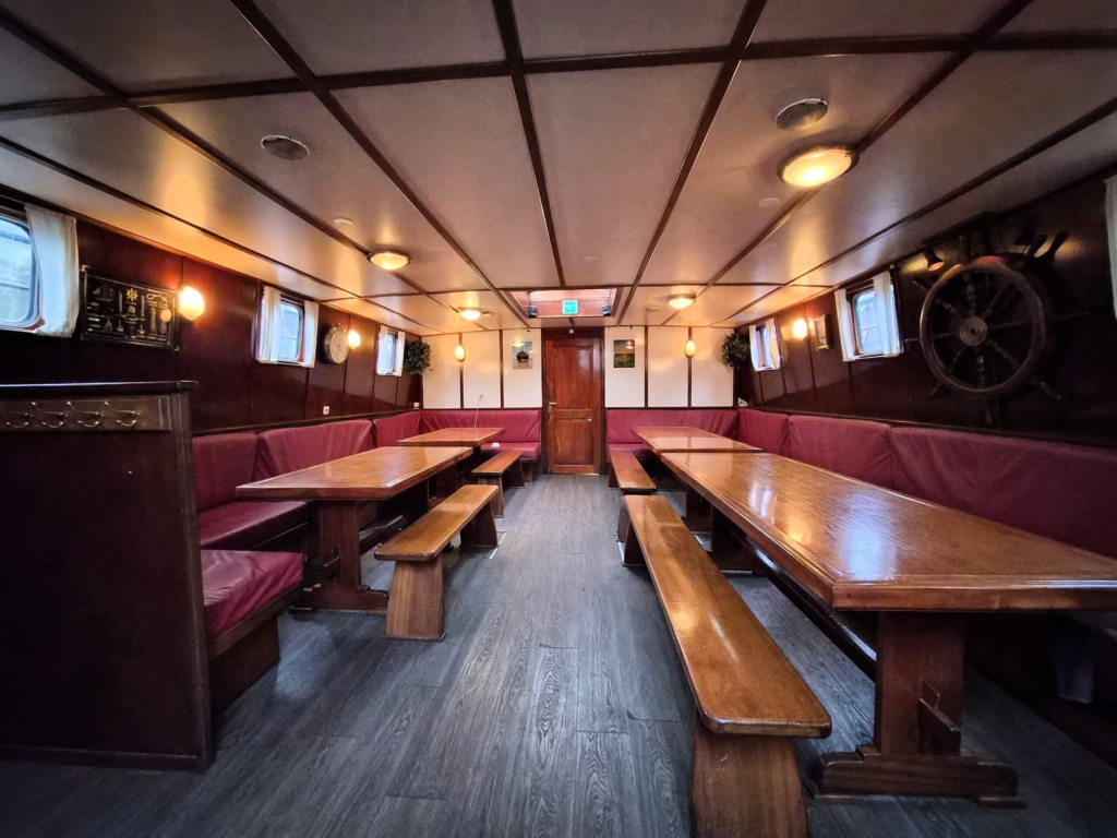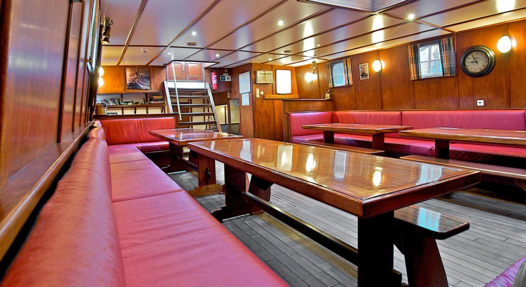 An Bord wird sofort spürbar, wie viel Raum dieses Schiff bietet. Die Waddenzee ist sowohl an Deck als auch unter Deck ausgesprochen großzügig gestaltet. Eine gemütliche Sitzecke, die hohe Reling und die breiten Gangborde schaffen eine entspannte und sichere Umgebung, in der sich auch Familien mit Kindern wohlfühlen. Unter Deck erwartet Sie ein geschmackvoll eingerichteter Tagesraum mit Bar, Zapfanlage, Zentralheizung, Stereoanlage, einer kleinen Bordbibliothek sowie verschiedenen Spielen für gemeinsame Stunden.